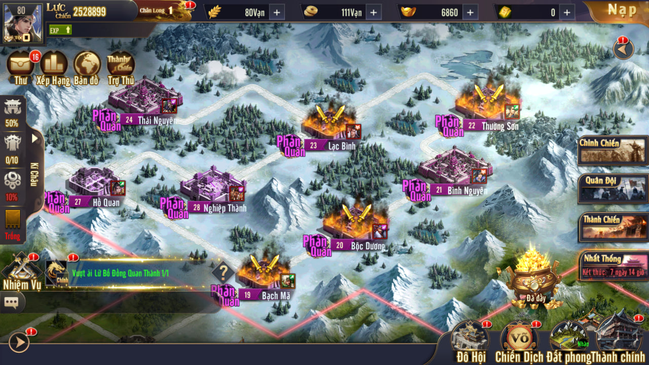 - 4. Quân đoàn sở hữu thành trì đặc sản càng nhiều, hệ số tăng điểm phòng thủ cho người chơi thuộc quân đoàn đó càng cao.