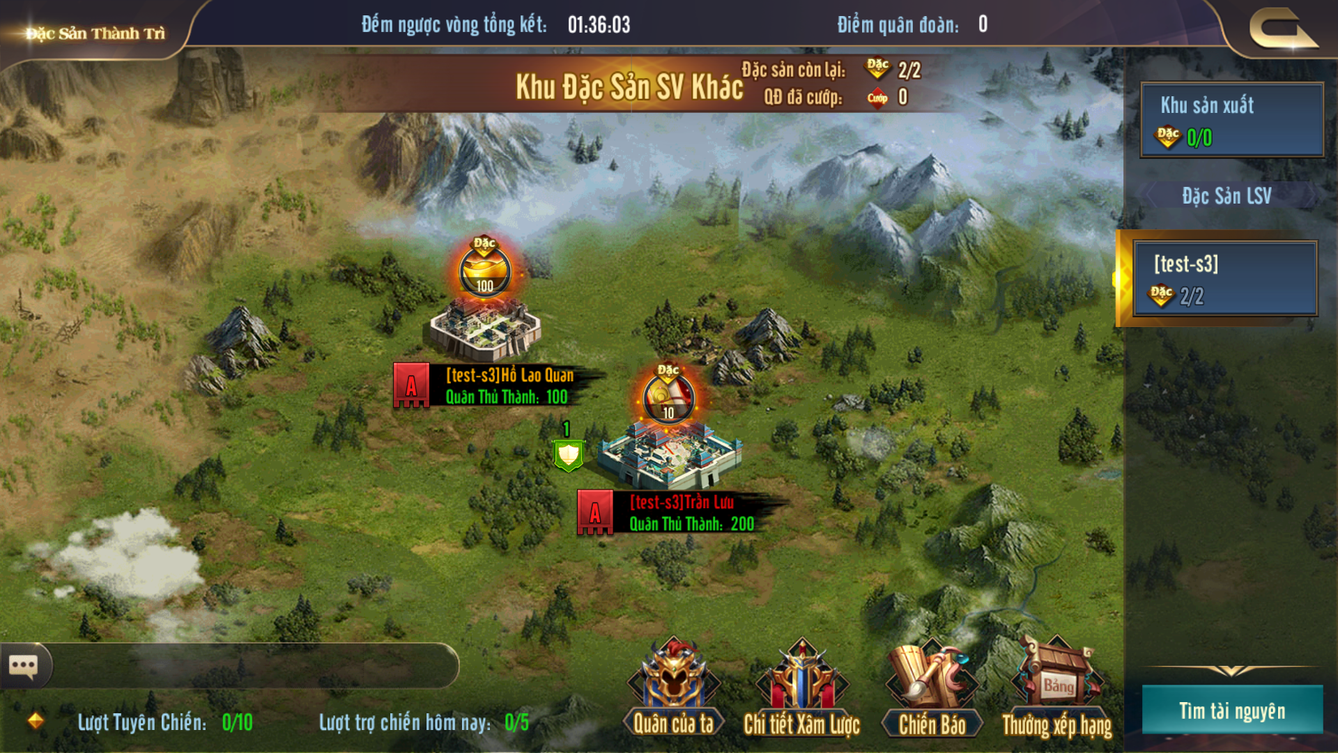 - 1. Người chơi có thể sử dụng tính năng "Quan Chiến" để tham gia trận chiến và hỗ trợ tranh đoạt đặc sản (công hoặc thủ).