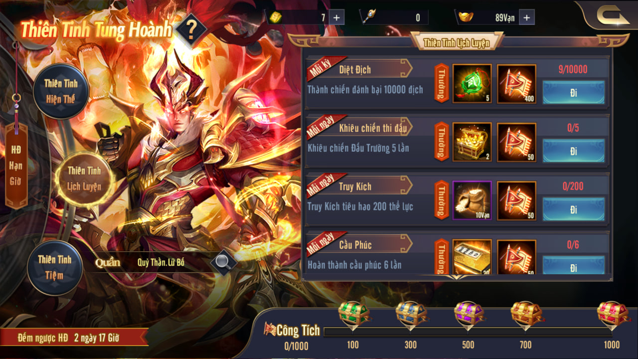 - 2. Thu thập đủ Công Tích để nhận các mốc thưởng tương ứng