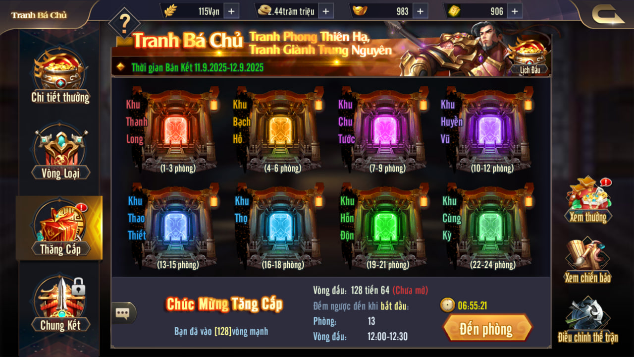 - Tùy theo quy mô sự kiện, chọn ra một số Chúa công đứng đầu trong Thành Chiến để vào vòng thăng cấp.