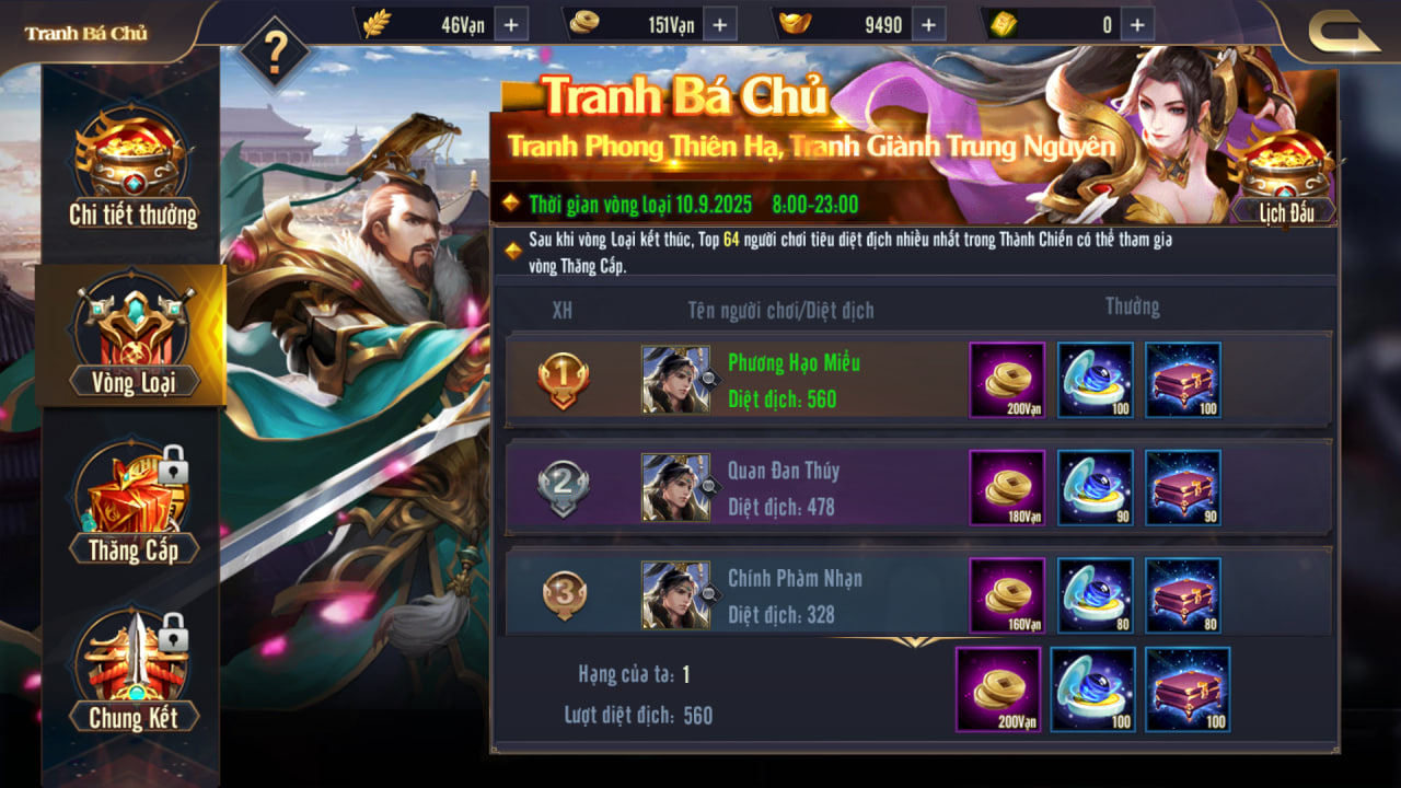 - Sau khi vòng loại kết thúc, phần thưởng xếp hạng sẽ được gửi qua thư.
