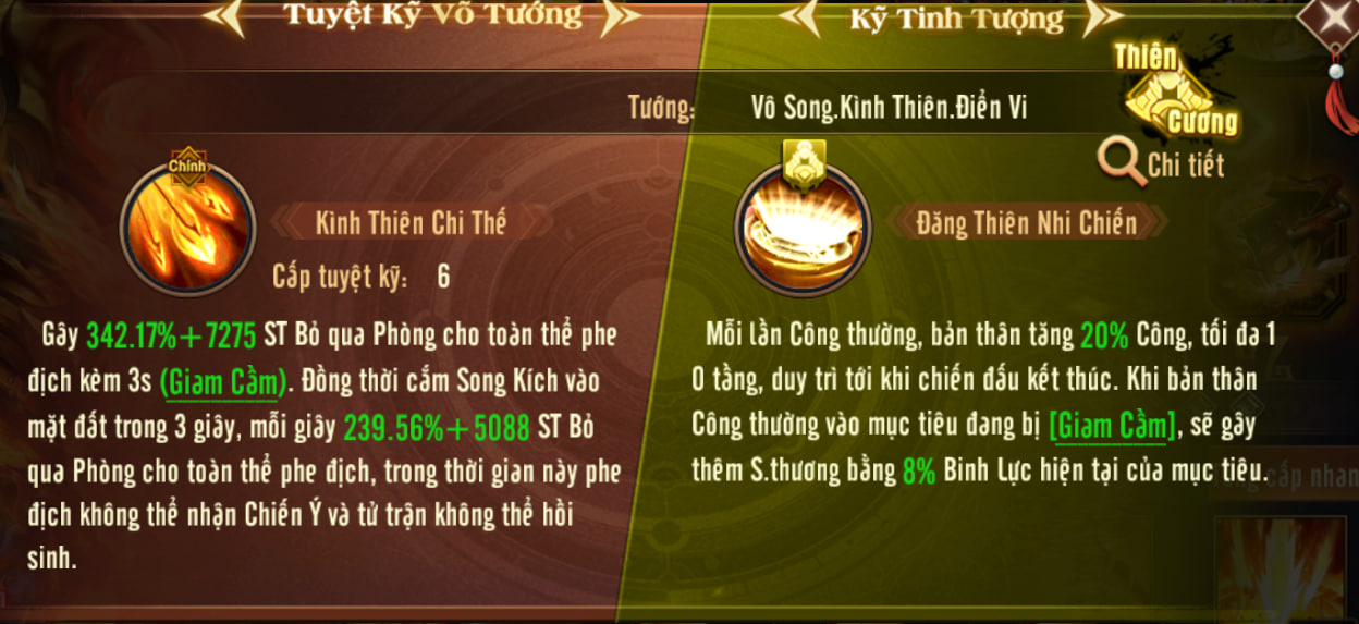 • 2. Công Thường vào mục tiêu bị Giam Cầm gây thêm ST bằng 8% binh lực hiện tại của mục tiêu