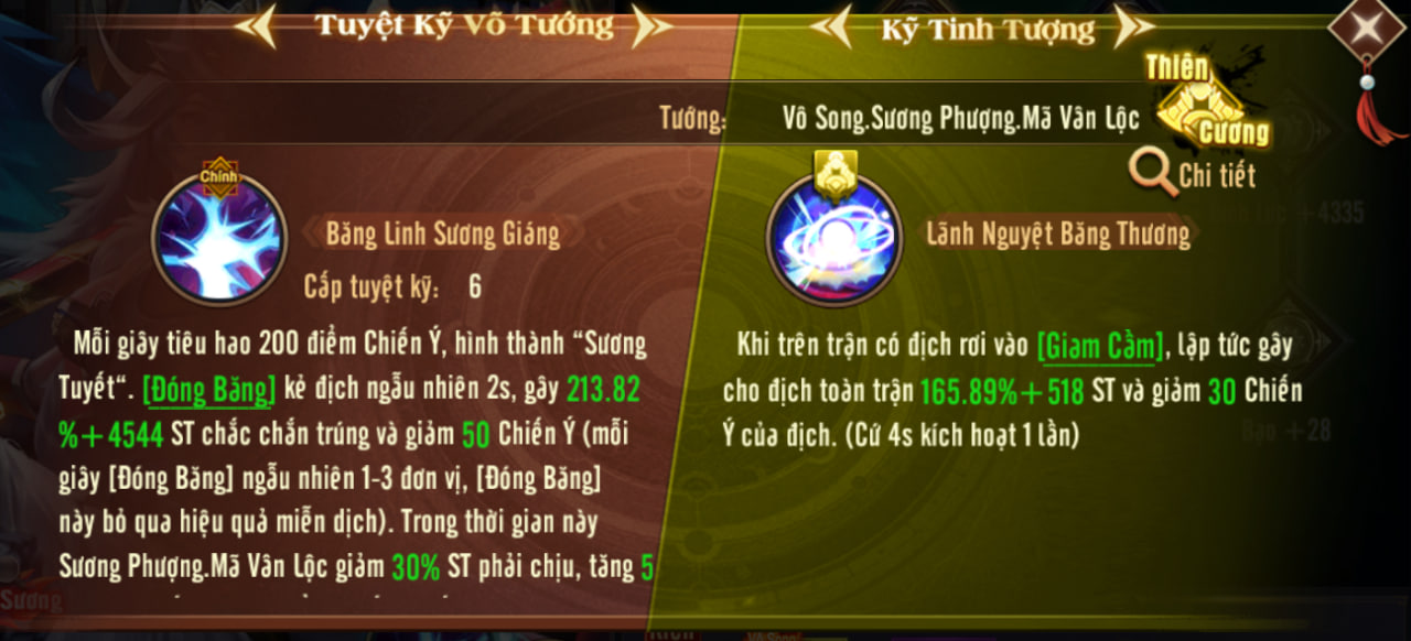 • 1. Mỗi giây tiêu hao 200 chiến ý, ngẫu nhiên đóng băng 1–3 tướng địch trong 2 giây, gây sát thương Chắc chắn Trúng và giảm 50 chiến ý