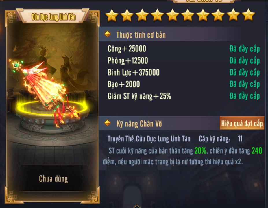 • ✔ Chân võ: Cửu Dực Linh Lung Tán