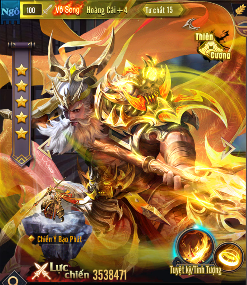 - 5. Về đội hình, Vô Song.Hoàng Cái rất phù hợp với cặp cha con nhà Tôn, Tôn Kiên và Tôn Thượng Hương, là một lựa chọn không thể thiếu ở hàng đầu. Ngoài ra, nếu đội hình thiếu tướng khống chế và tướng đỡ đòn, Vô Song.Hoàng Cái cũng là một sự lựa chọn tuyệt vời, đặc biệt là với các đội hình chuyên về khống chế Chiến ý của đối thủ.