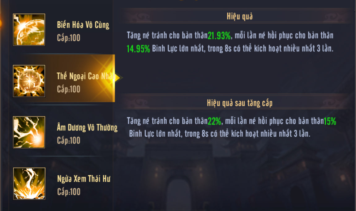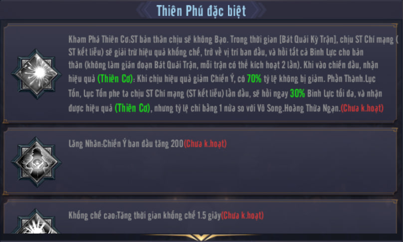 👉 Khuyến nghị: bắt buộc nâng tới Thiên phú 2 để có +200 chiến ý ban đầu.