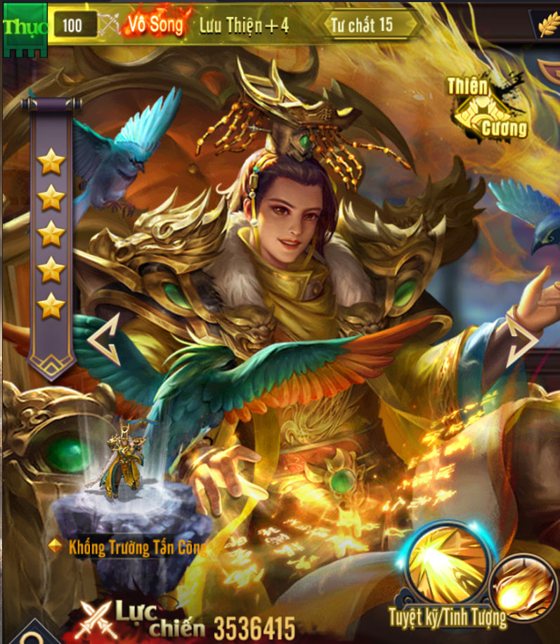 - 4. Tất cả các kỹ năng của Vô Song.Lưu Thiện đều không có hiệu ứng Bỏ qua Phòng hay Chắc chắn trúng. Vì vậy, trong các trận chiến với đội hình có lực chiến vượt trội, ông sẽ khá vất vả.
