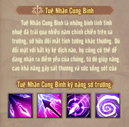 Bắn ngẫu nhiên mũi tên vào các tướng địch, gây sát thương. Kẻ địch đang ở trạng thái Tản Mạn hoặc Trễ Nãi sẽ chịu thêm 20% sát thương.