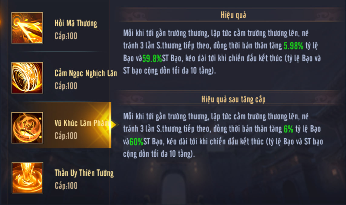 Thiên phú 1 – Vũ Khúc Lâm Phàm (nâng cấp):