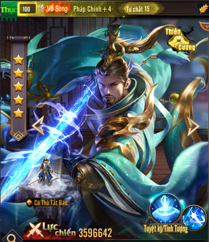 - Vô Song.Pháp Chính là một tướng sát thương cực mạnh ở giai đoạn cuối trận. Tần suất tung Tuyệt kỹ quyết định lượng sát thương gây ra, vì vậy rất phụ thuộc vào Chiến Ý.