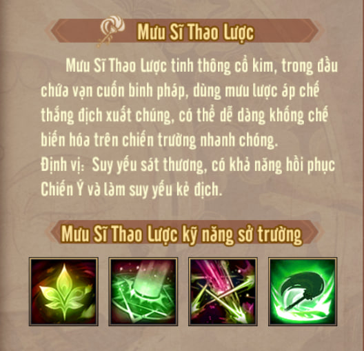 Là Mưu sĩ thao lược, càng tăng cường khả năng khống chế và hút Chiến Ý của địch.