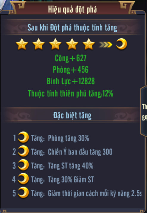 Khuyên nên đột phá đến 2 Trăng (+300 chiến ý đầu trận).