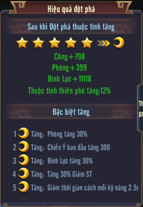• Khuyến nghị đột phá tối thiểu đến 2 Trăng để có +300 Chiến ý khởi đầu.