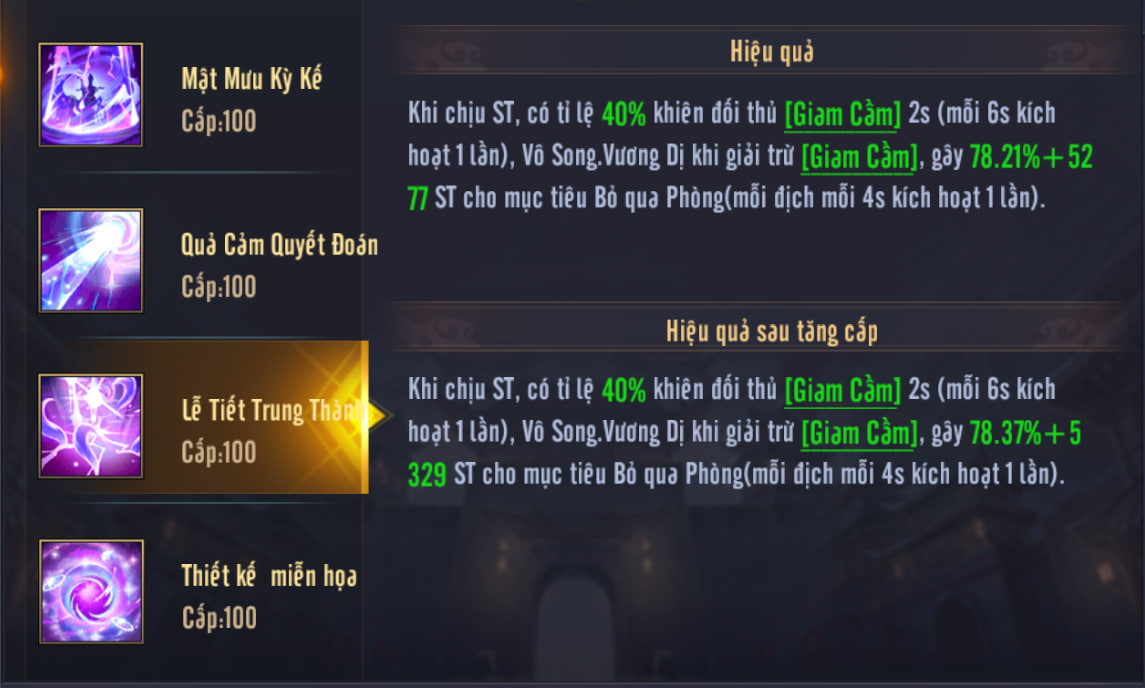 Kỹ năng 3 – Lễ Tiết Trung Thành