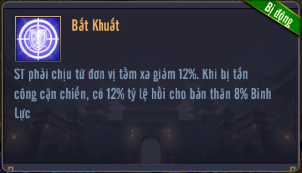 Giảm ST phải chịu từ đơn vị tầm xa. Khi bị tấn công cận chiến, có tỷ lệ hồi Binh Lực cho bản thân