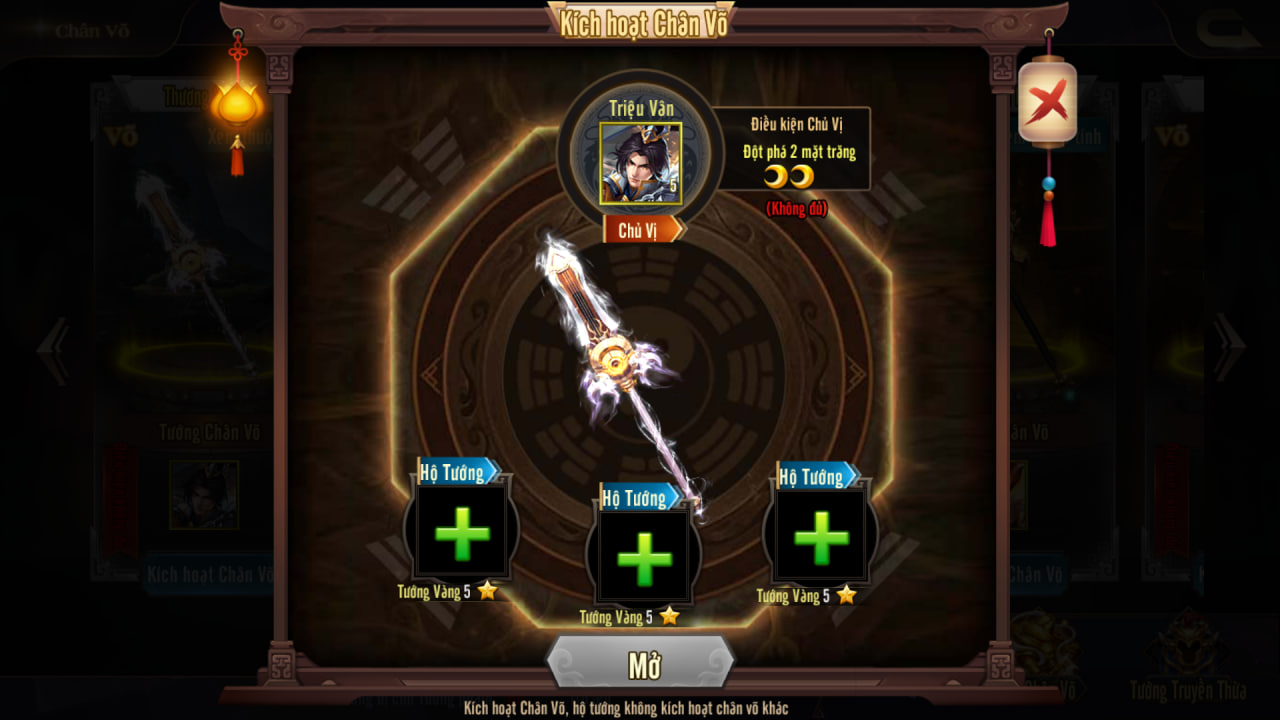 Chân Võ là một dạng trang bị đặc biệt, có thể trang bị cho Tướng để tăng mạnh chỉ số cơ bản, đồng thời cung cấp thêm kỹ năng khi vào trận.